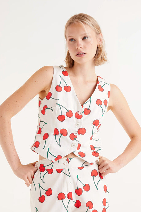 Chaleco sastre estampado cerezas