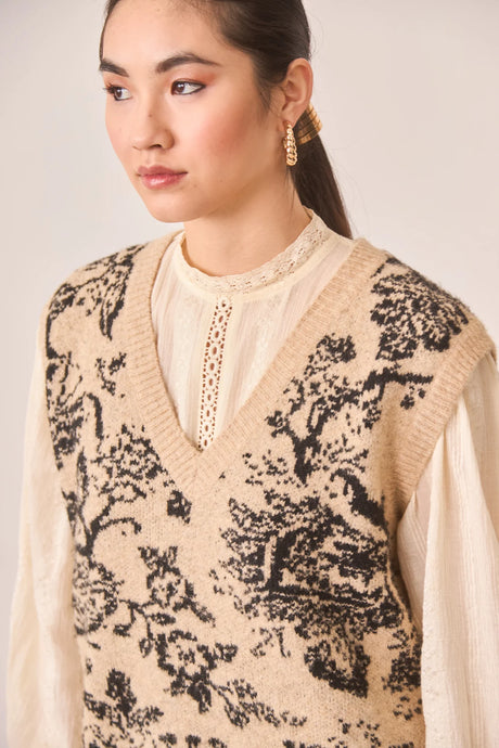 CHALECO DE PUNTO JACQUARD FLORAL - CAMEL