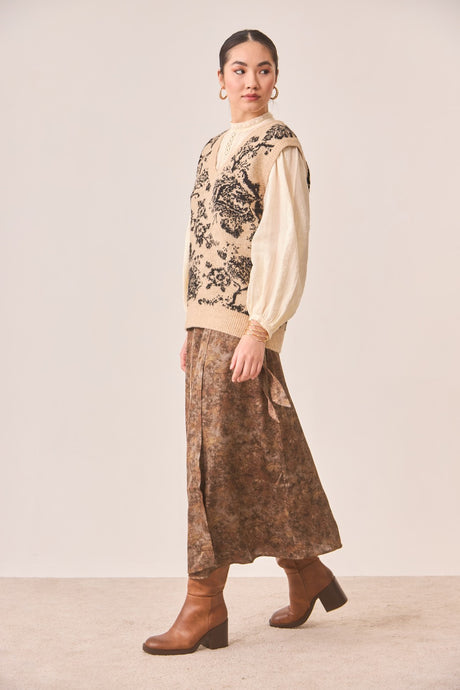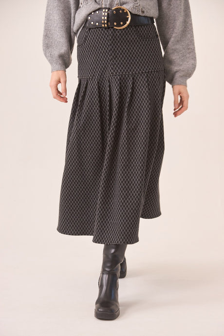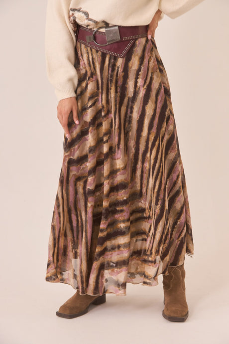 SANZA - FALDA MIDI JACQUARD ZIC ZAG TRICOLOR.