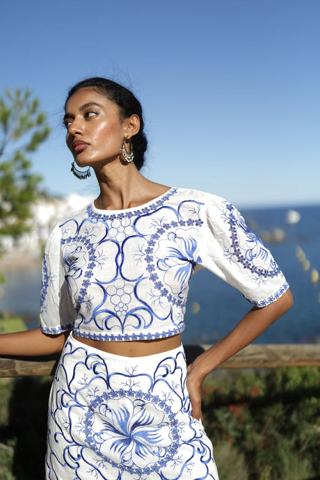 BLUSA BLANCA BORDADO AZUL LUNA LLENA