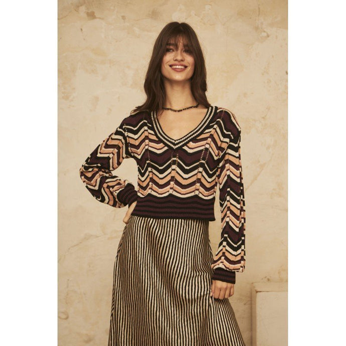 JERSEY DE CUELLO ALTO CON MOTIVOS GEOMÉTRICOS ÓPTICOS