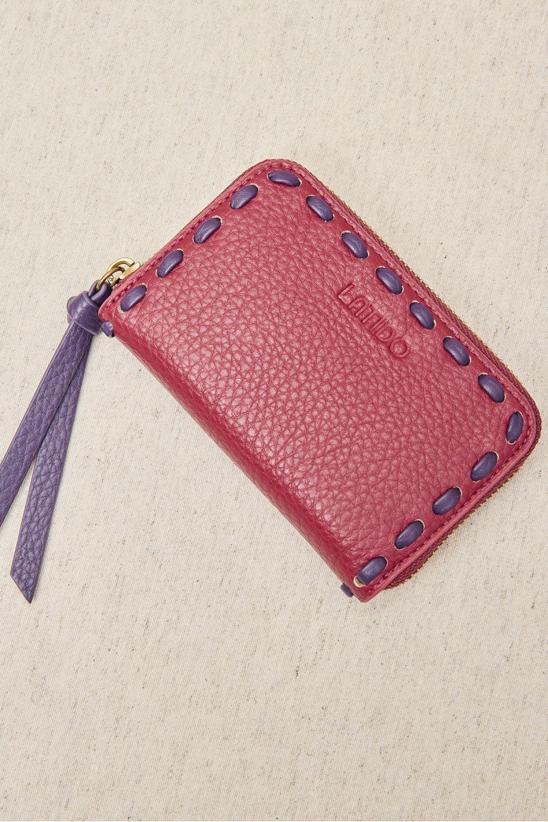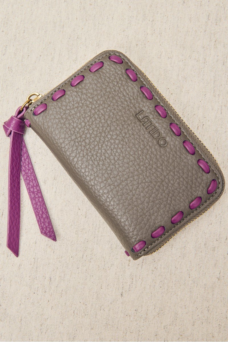 Silueta rectangular con cremallera y compartimentos interiores. Las costuras decorativas en contraste subrayan su diseño artesanal. Realizada en piel ecológica con acabado granulado.
