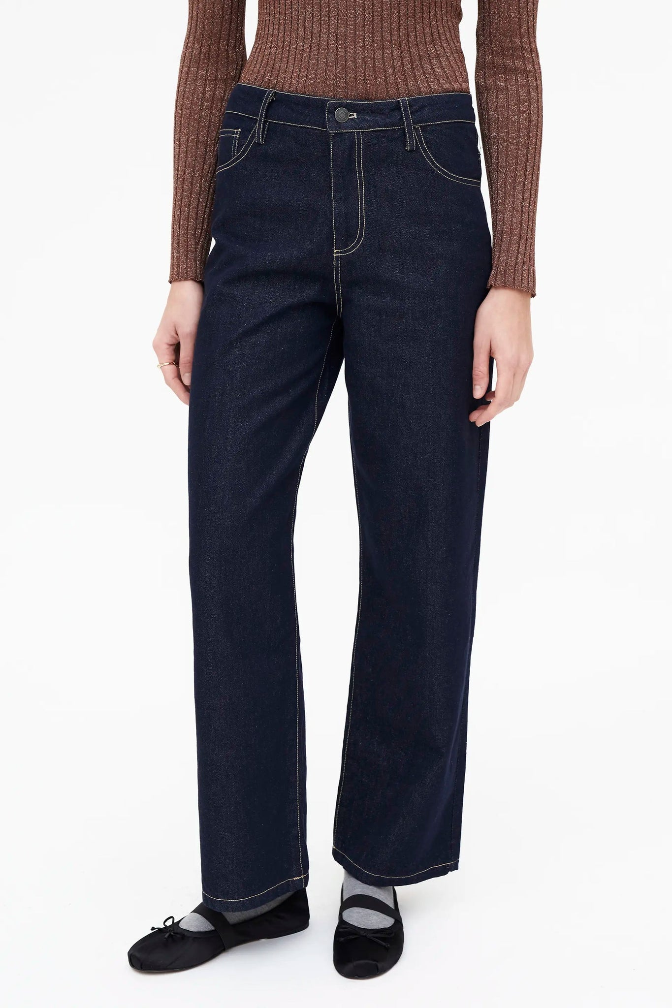 Pantalón con tejido lurex denim color azul. Con cintura fija de tiro medio. Cierre frontal con botón y cremallera. Bolsillos laterales y traseros.